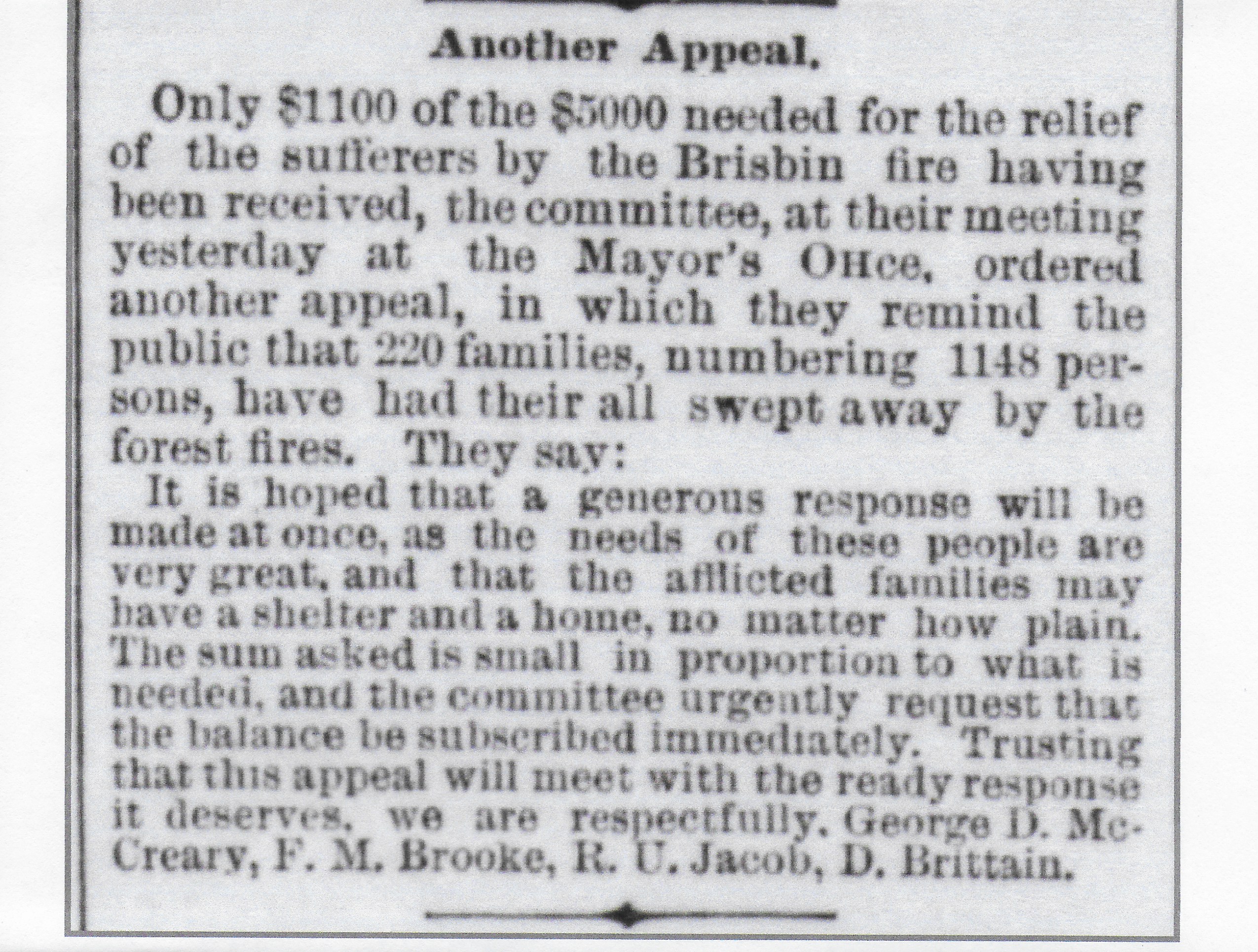 The news of the fire and the request for relief went out even as far as San Francisco.
